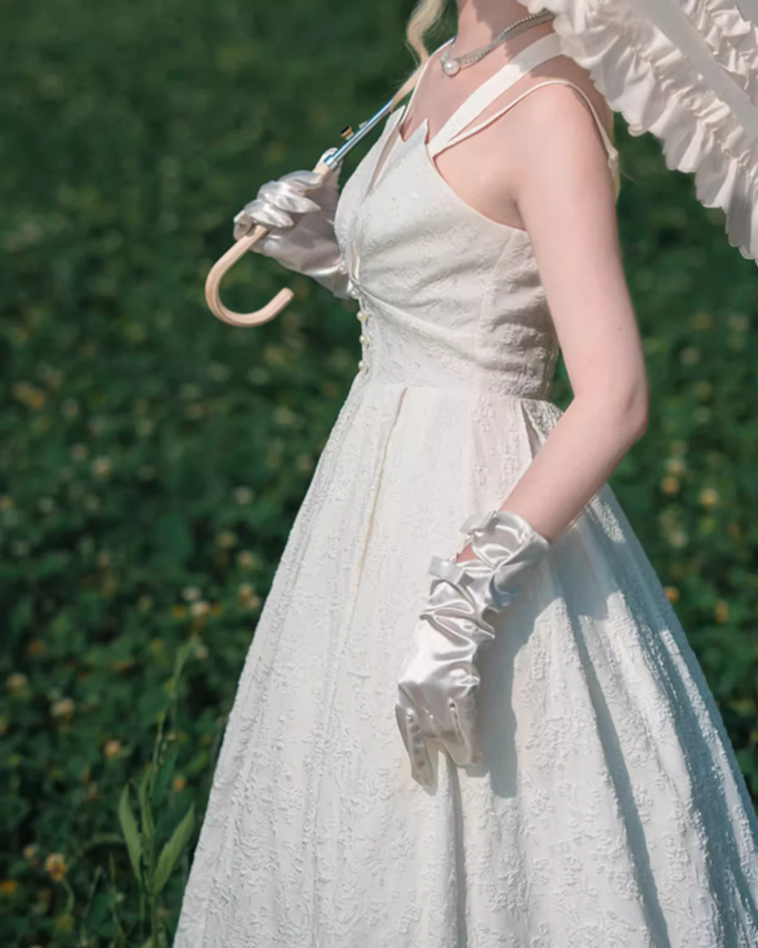 The white color and rough slit-like design on the chest are reminiscent of a British actress.