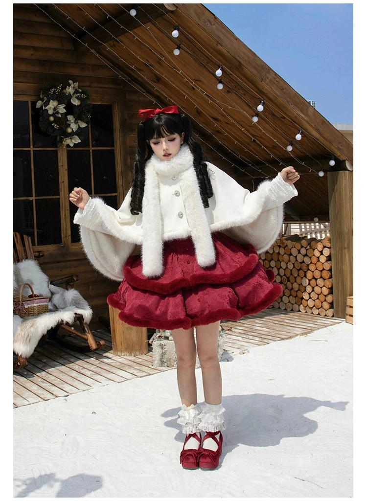 This is a recommended item for twin outfits in winter. Pair it with a warm knit blouse to keep warm in a cute way.