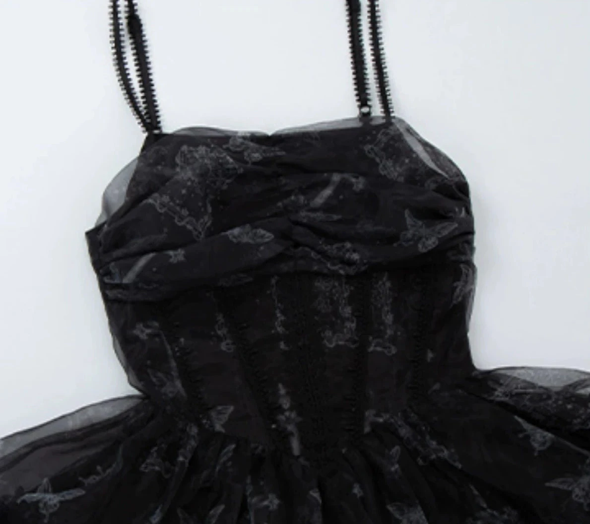 A cool and elegant gothic lolita jumper skirt with sword and butterfly designs.