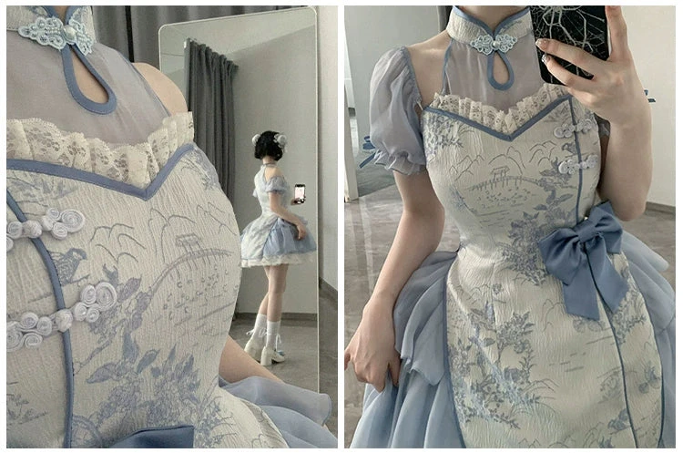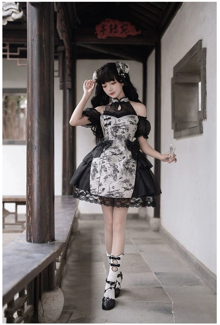 A Chinese-style dress made from luxurious jacquard fabric.
