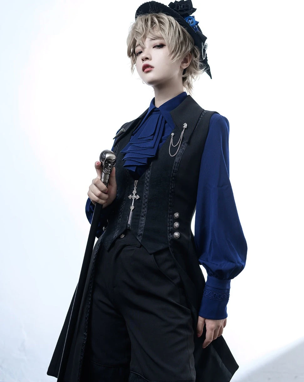 Pair it with shorts and a vest for a prince-like look. Gothic Lolita coordination with a skirt is also recommended ♡