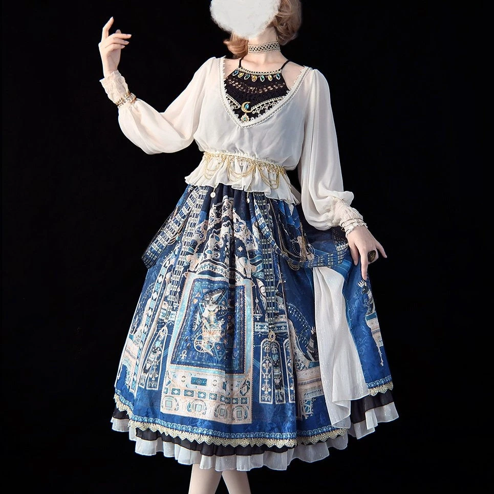 Set sale Twilight Egyptian style Lolita side chiffon SK + V neck blouse
