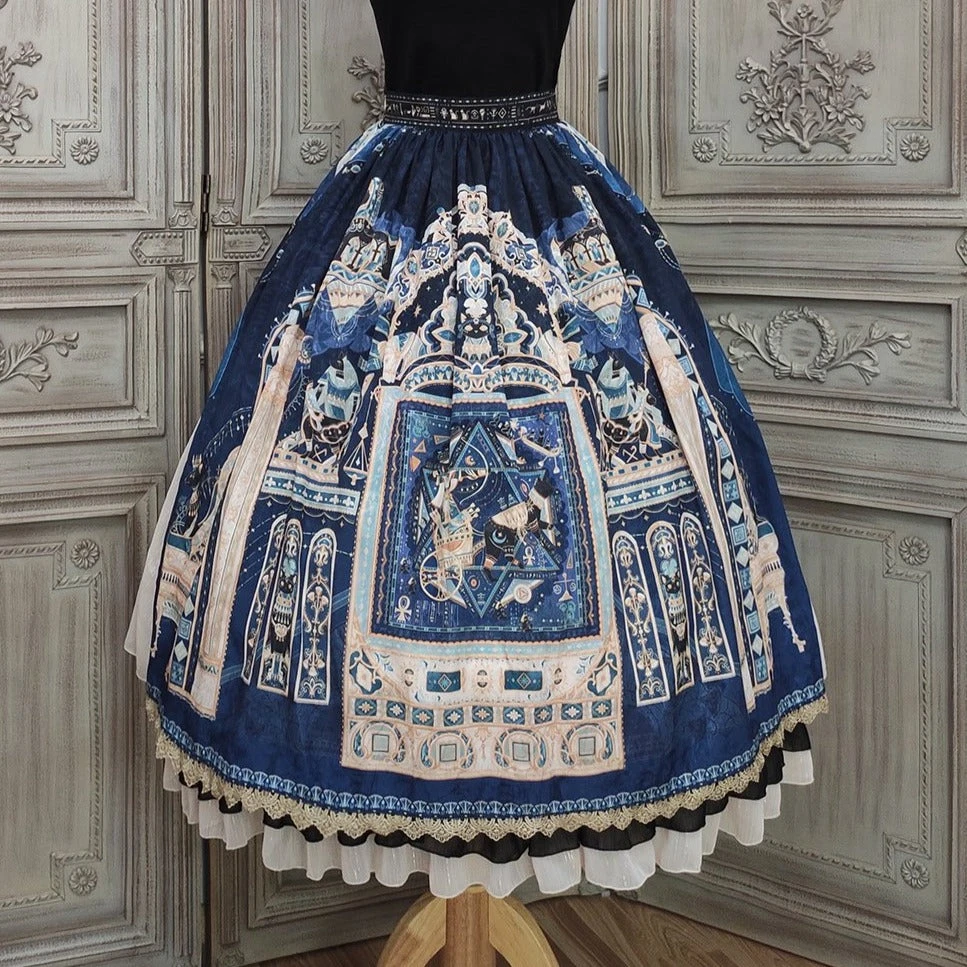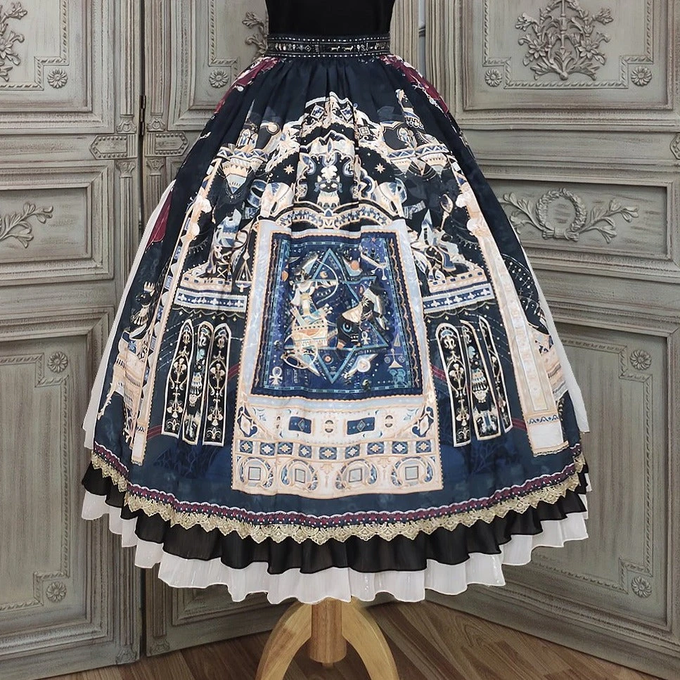 Egyptian Lolita Twilight series skirt. Available in 3 colors: black, navy, and off-white.