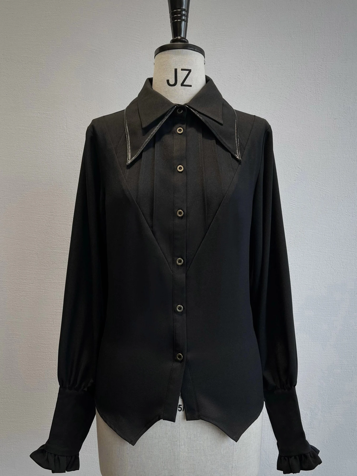 A blouse with a double collar.