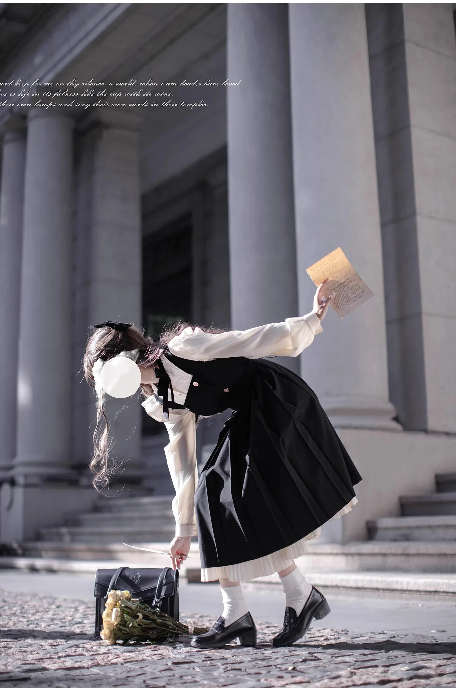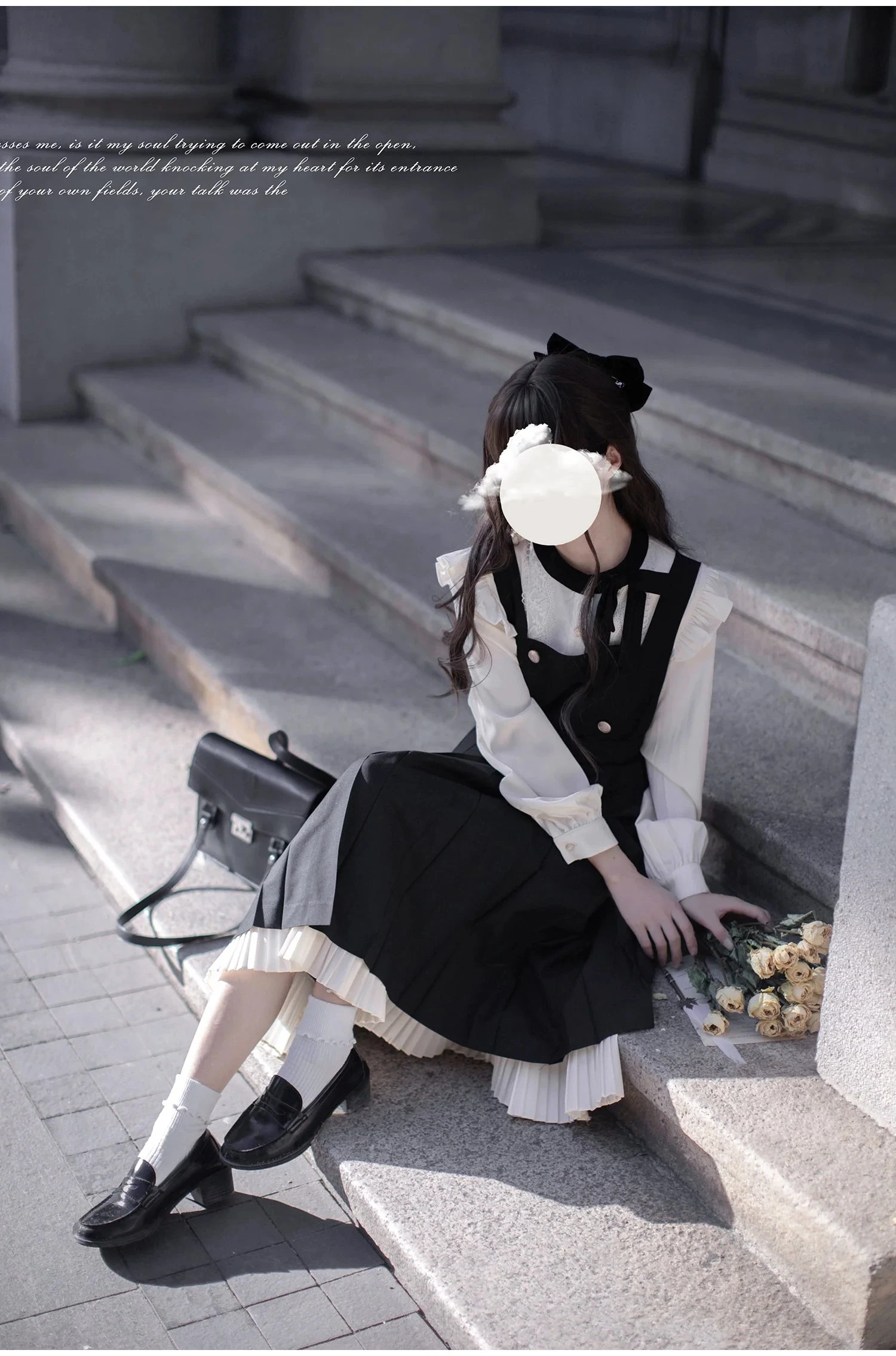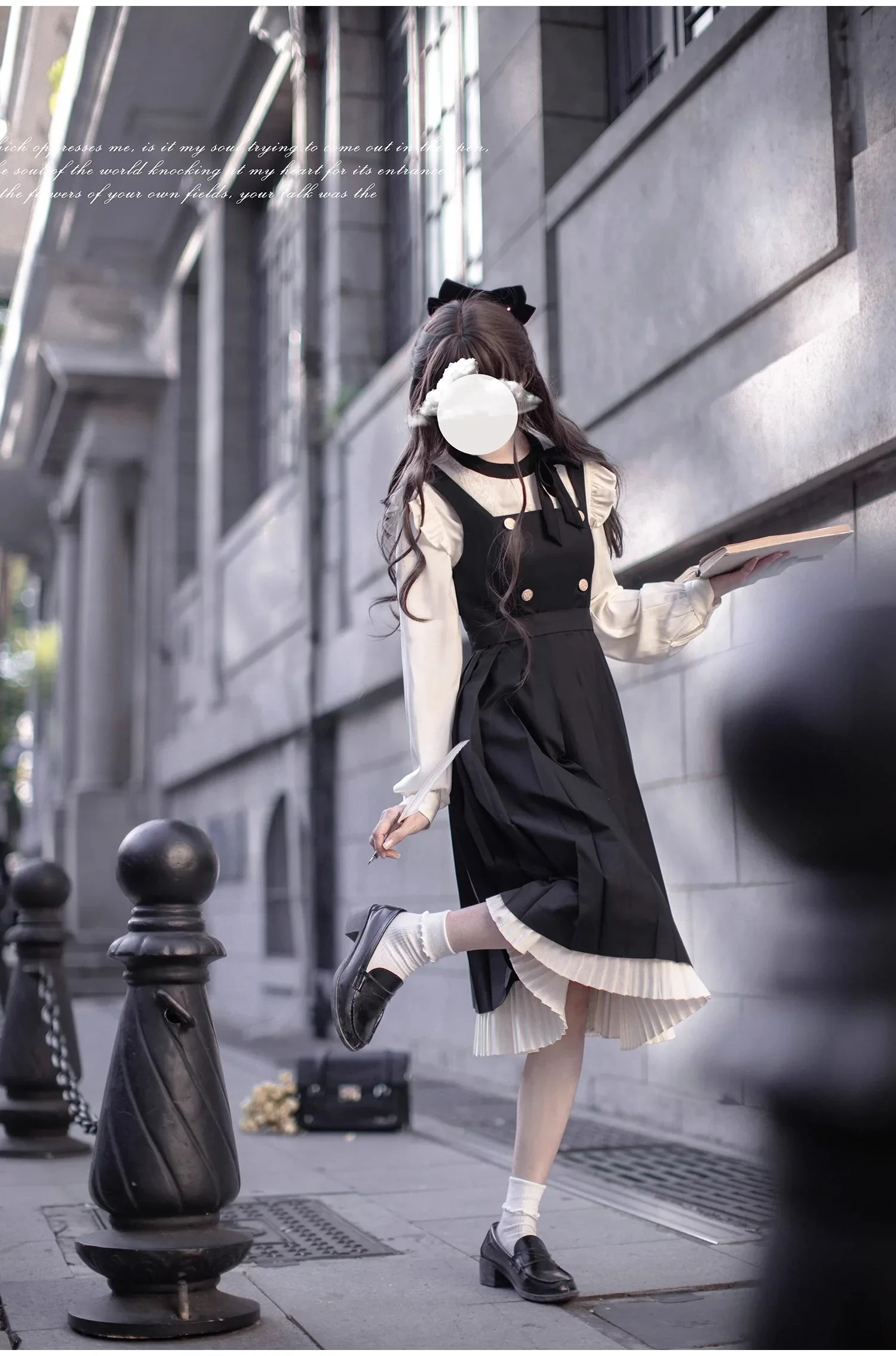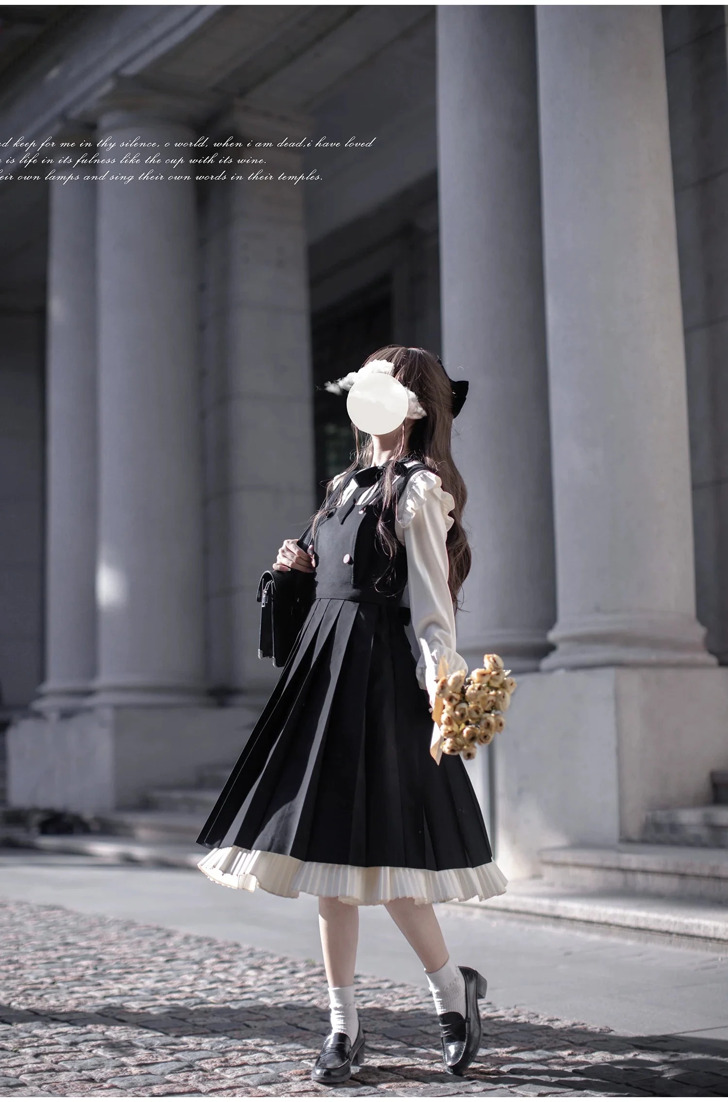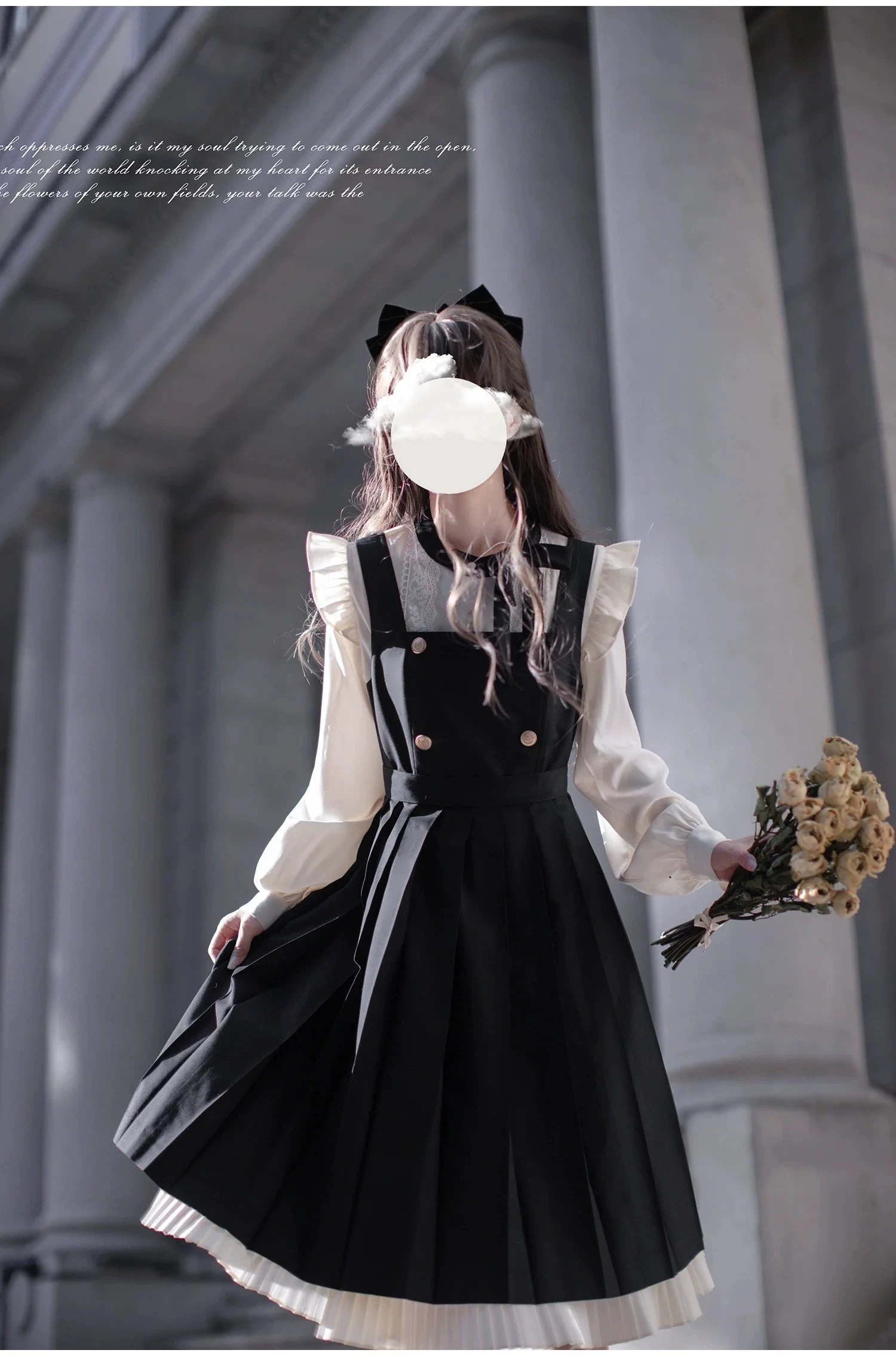 This page only sells the blouse, jumper skirt, and ribbon tie. Hair accessories and other items are not included.
