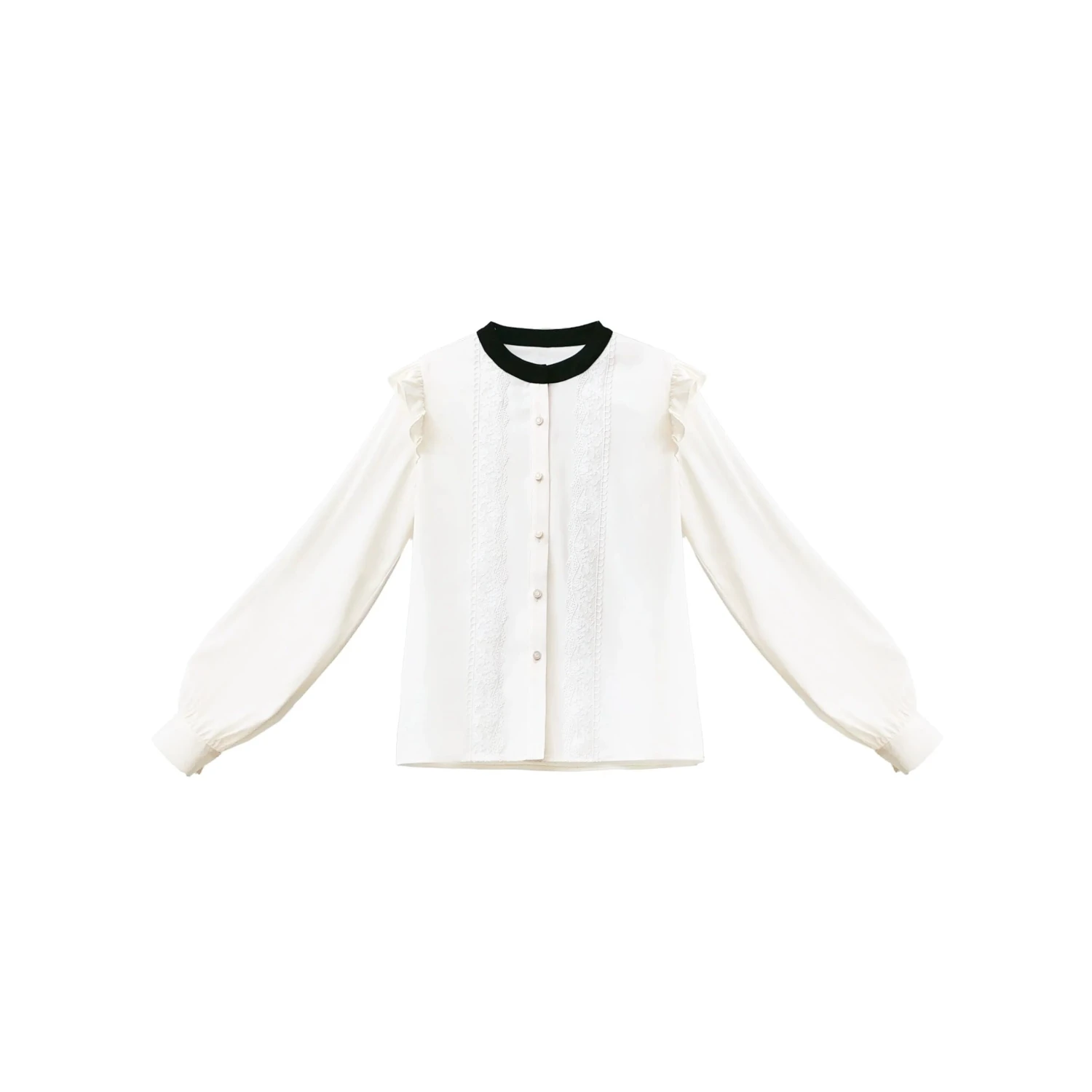 The long-sleeved blouse with cute ruffles on the shoulders and the fluttering pleated skirt are very elegant ♡
