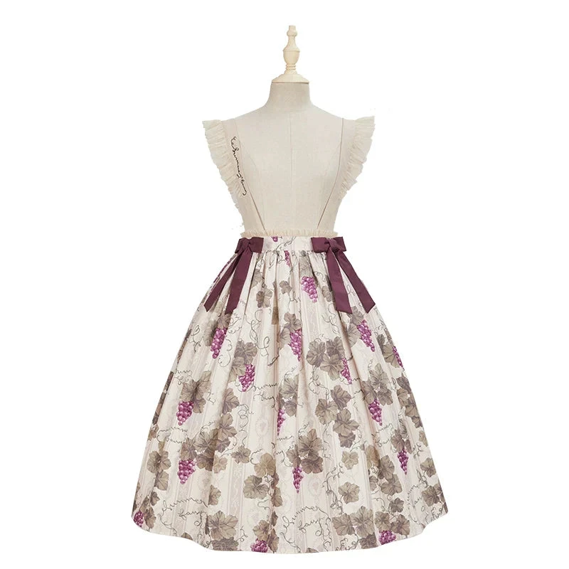 A chic suspender skirt with a grape pattern